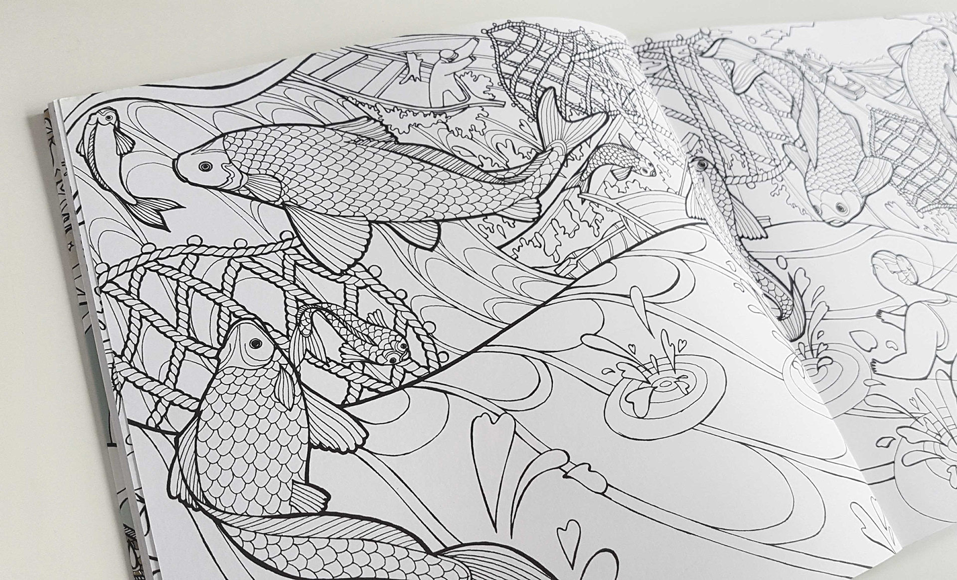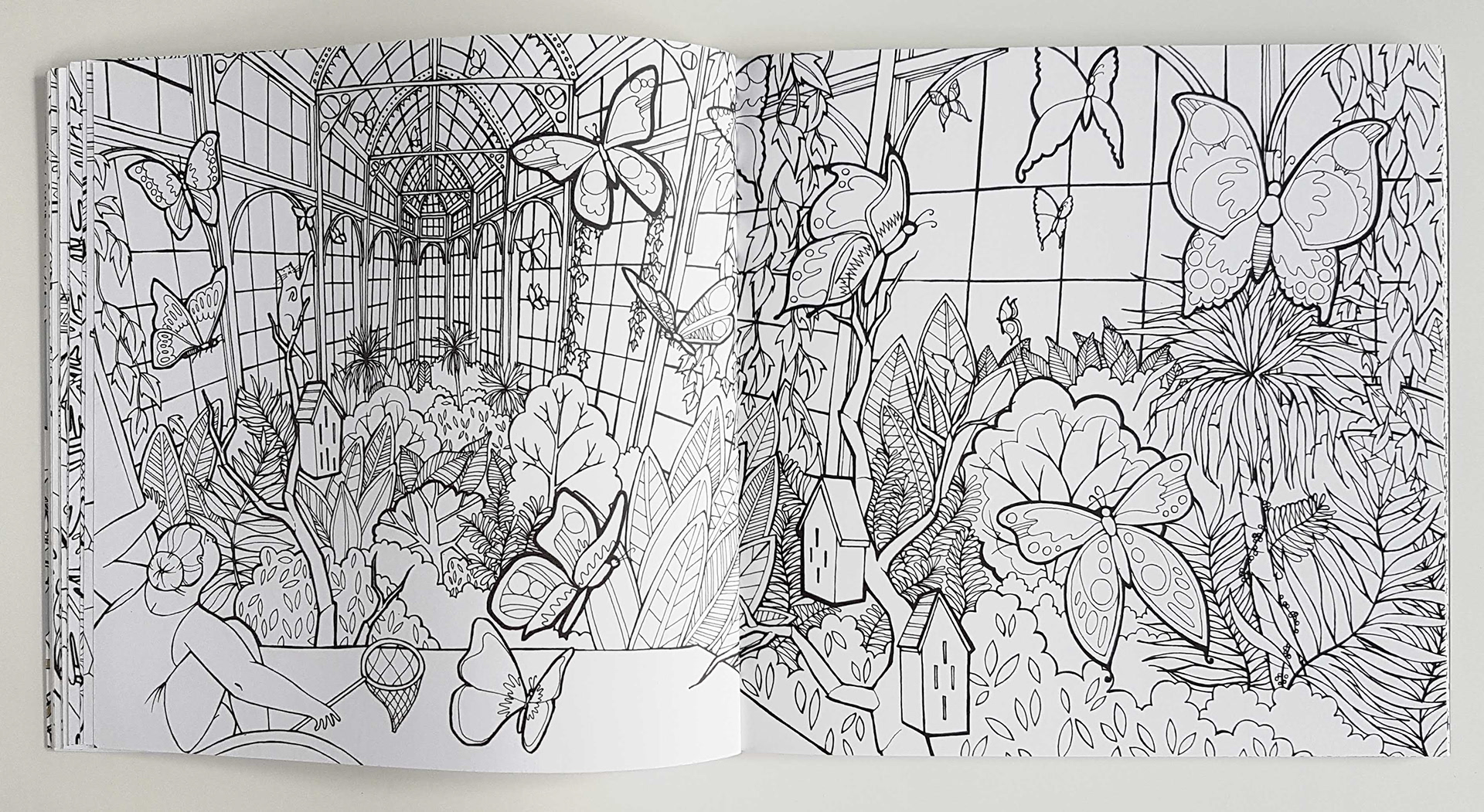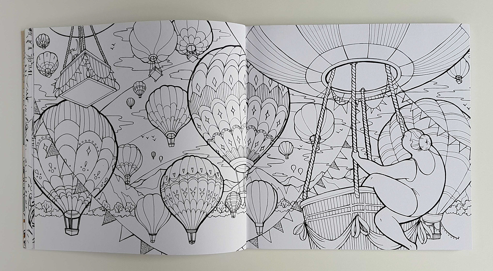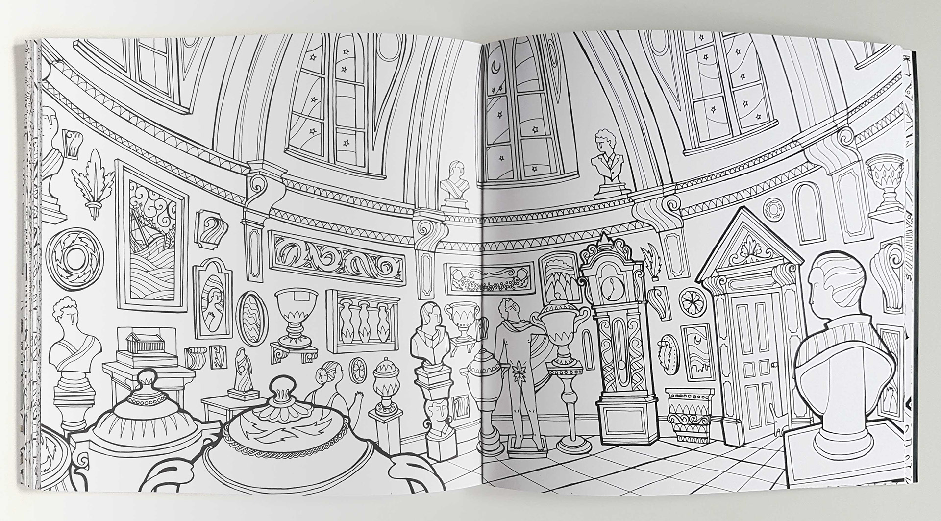 A selection of some spreads from my recently published colouring book with Quadrille Publishing. The colouring book follows a nameless woman through her dreams as she tries to retrieve her cat.