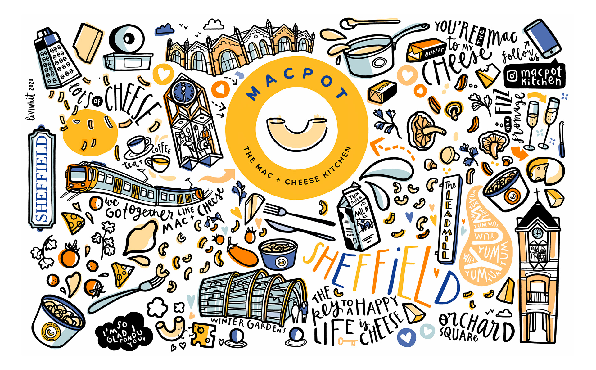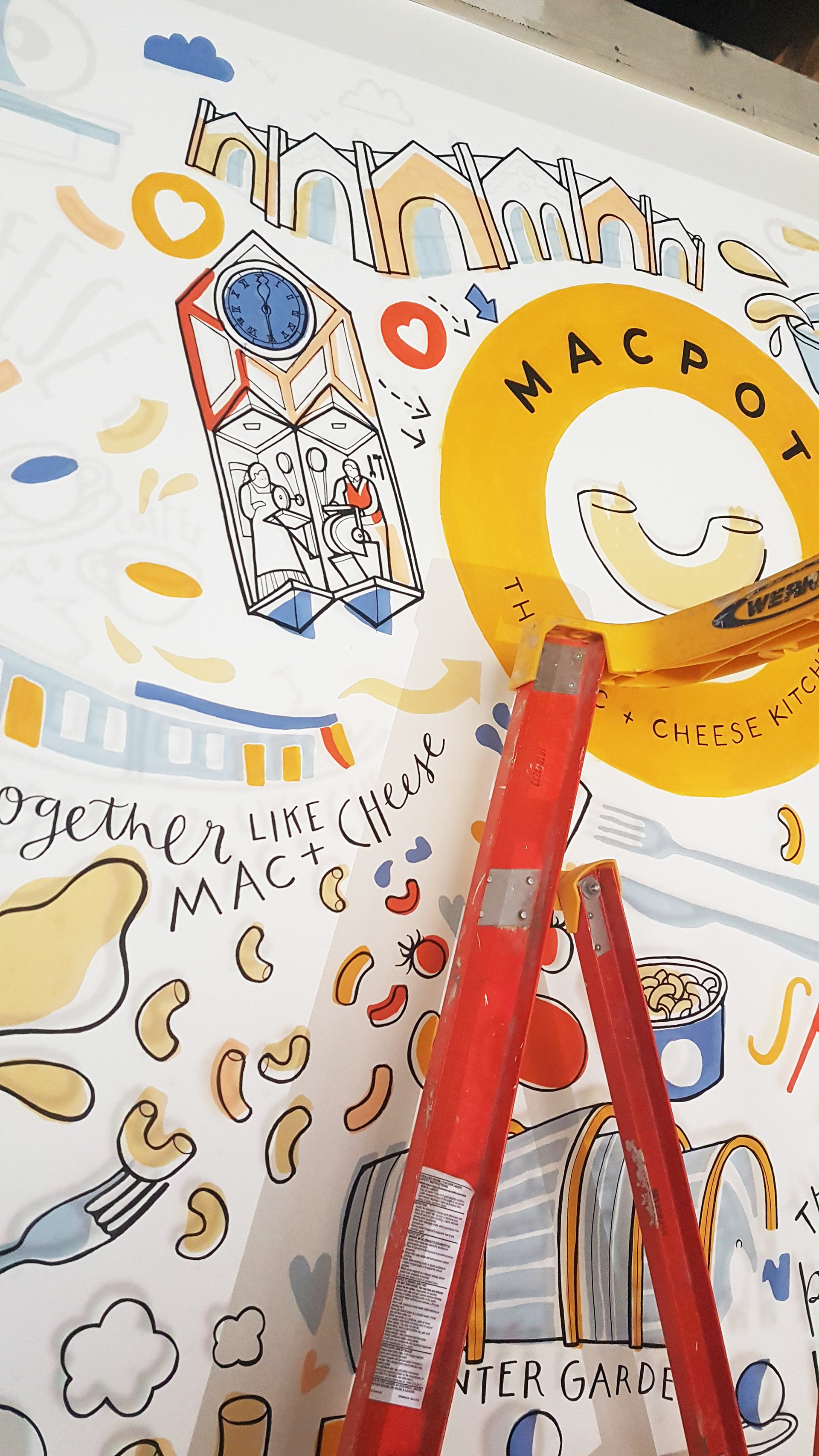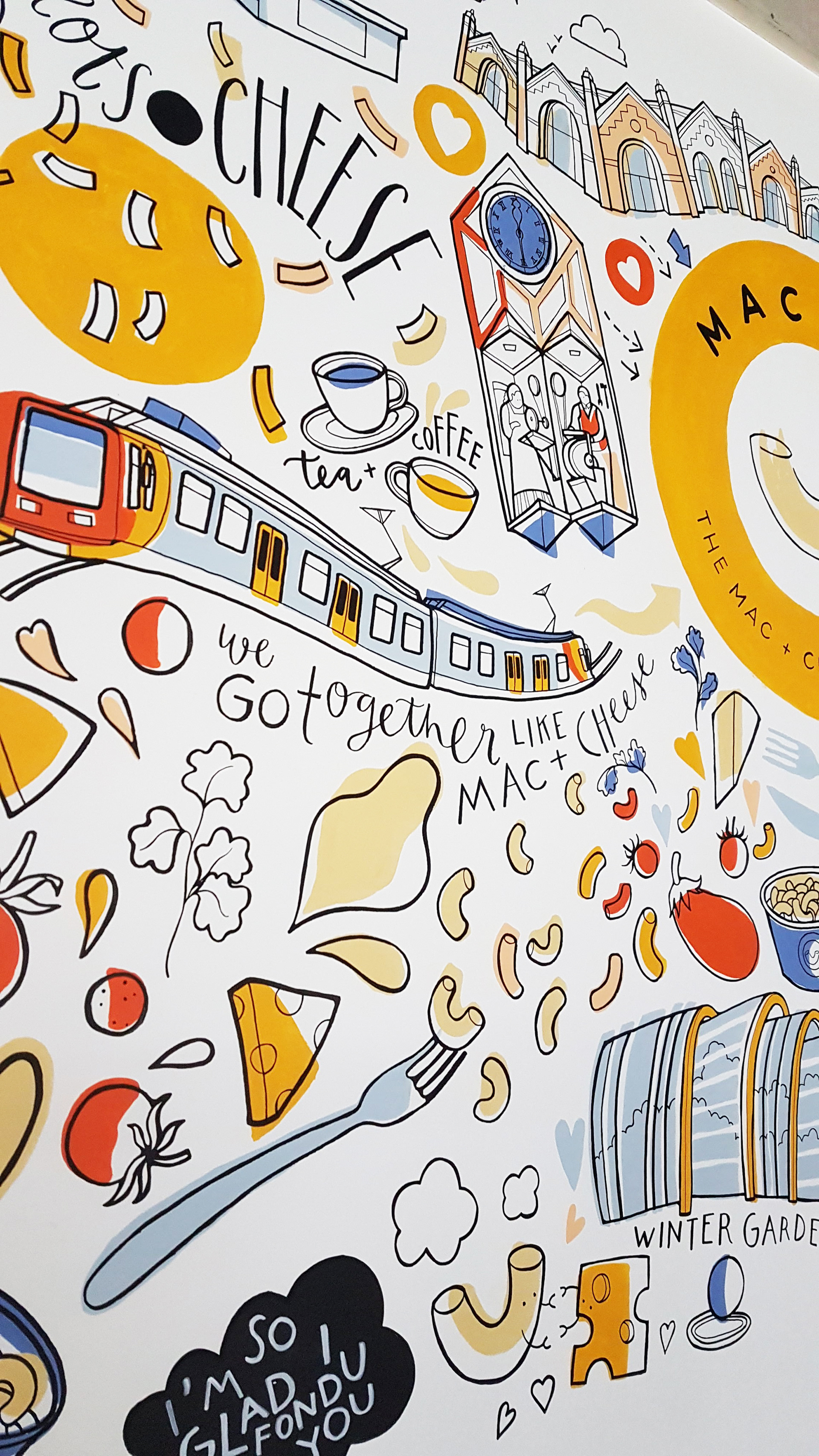 On site mural for Macpot, a mac & cheese kitchen & canteen opened in Sheffield