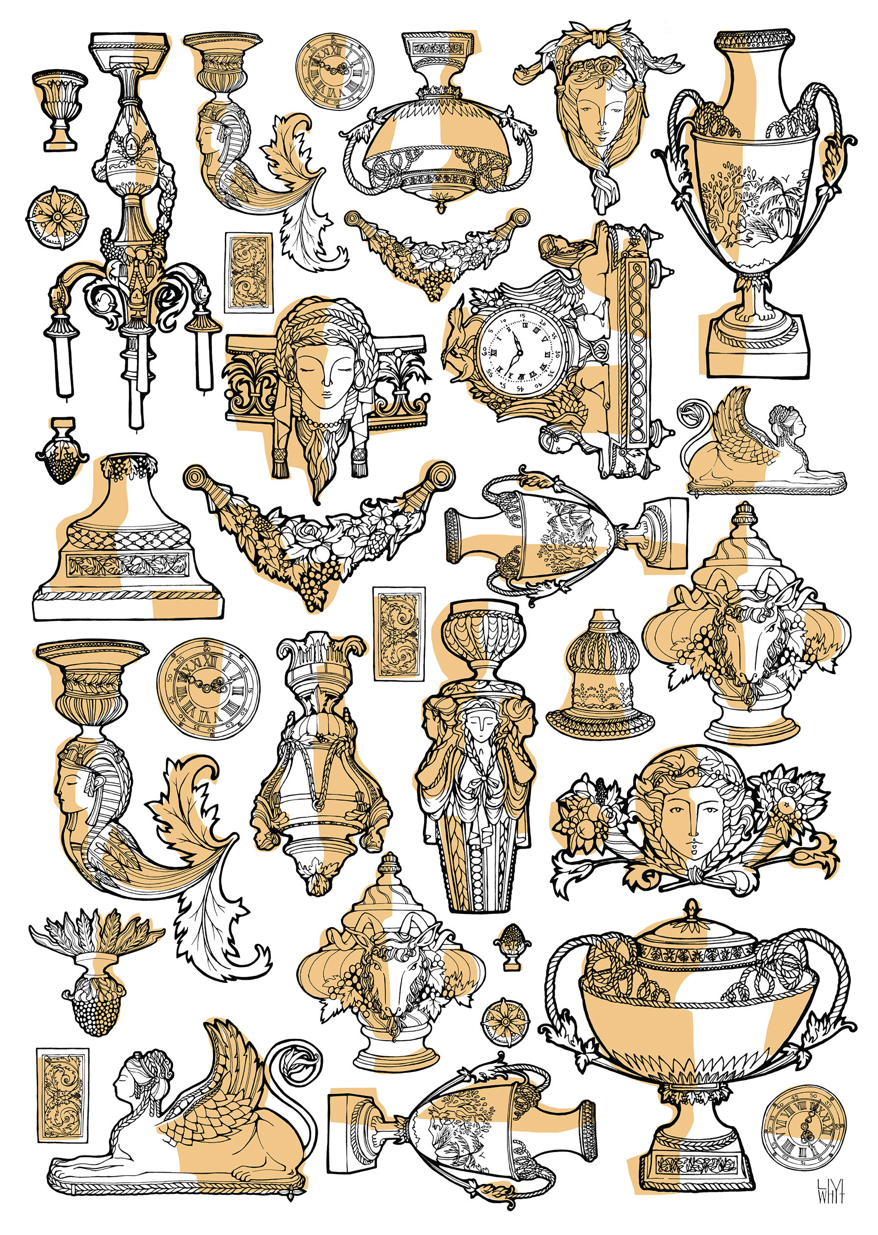To celebrate the opening of the Wallace Collection's exhibition on Gilded Interiors, I was asked to produce an illustration to be used on products in the exhibition gift shop.
